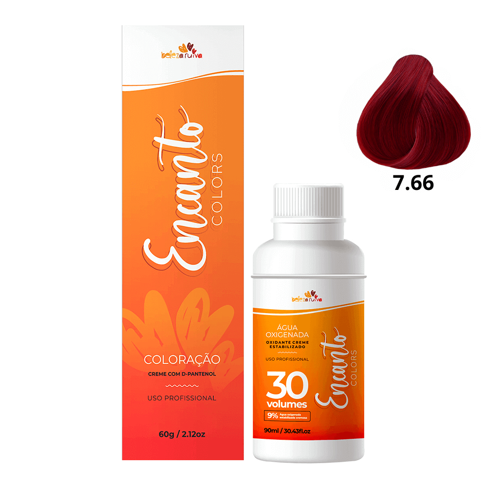 Kit Beleza Ruiva Encanto Colors 7.66 e Oxigenada 30vol 9%