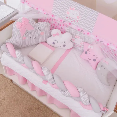Kit Berço 12 Peças Formato Nuvem Estrela Lua