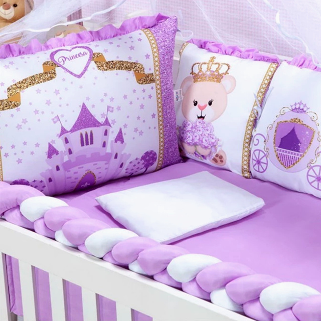 Kit Berço Americano 12 Peças Unissex C/ Mosquiteiro Trança Algodão Enxoval Bebê Completo