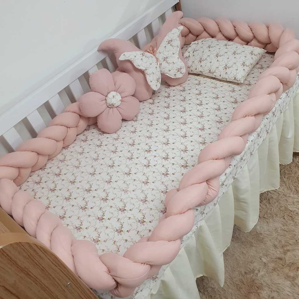 Kit Berço Americano Trança 05 Peças Menina Menino Baby bebê Luxo decoração almofada flor/ borboleta tem cupom de desconto?