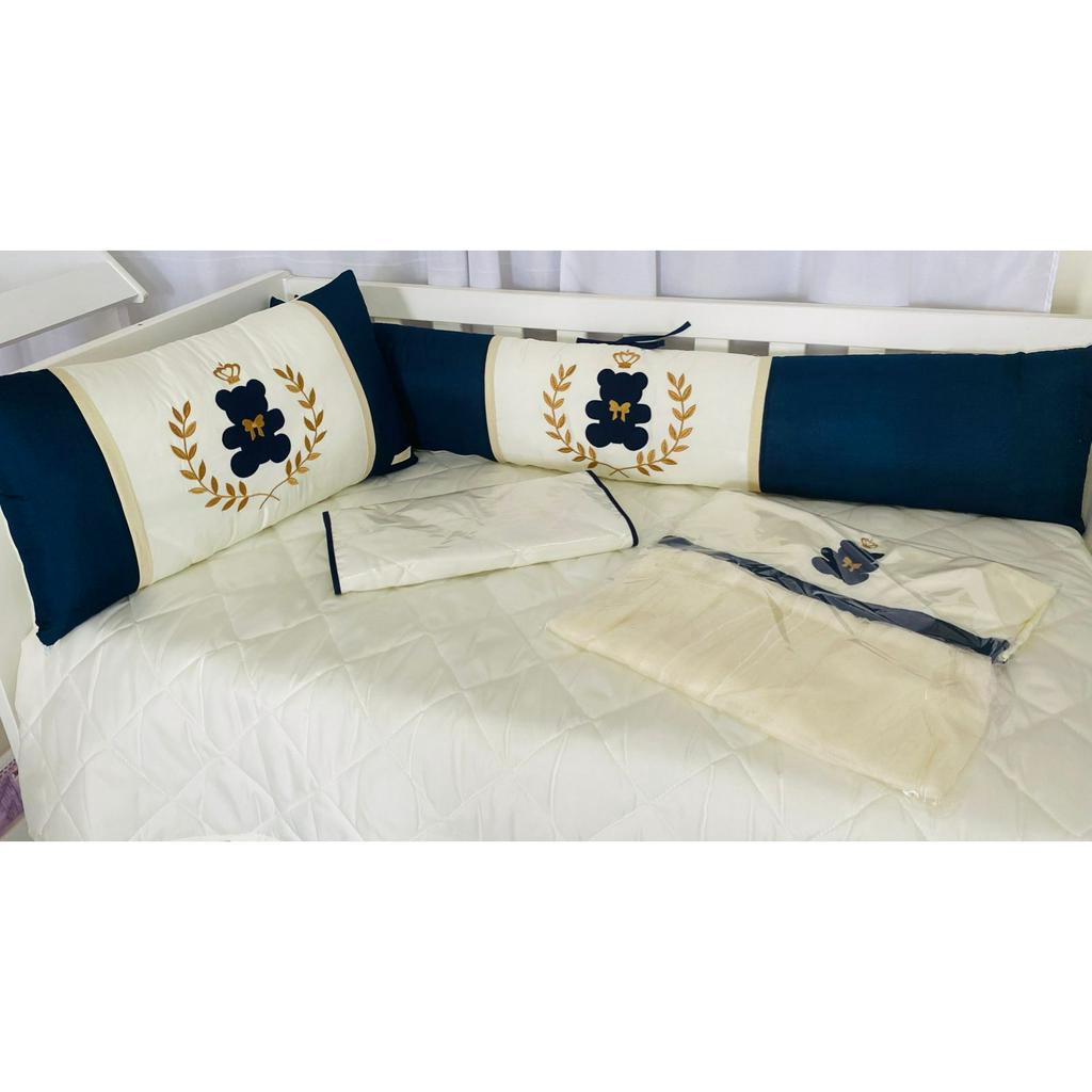 **FOTO MERAMENTE ILUSTRATIVA** **PORTA FRALDA/TRECO // ALMOFADA AMAMENTAÇÃO // NINHO - PEÇAS VENDIDAS SEPARADAMENTE** Contém na Embalagem: 1 Edredom 1.50m Comp. x 1.00m Larg. 1 Cabeceira 0.65cm Comp. x 0.38cm Alt. 2 Laterais 1.30m Comp. x 0.28cm Alt. 1 Lençol com Elástico 1.55m Comp. x 0.90cm Larg. 1 Fronha 0.39cm x 0.26cm 1 Trocador 0.60cm Comp. x 0.40cm Larg. 1 Mosquiteiro 1.60m Alt. x 1.40m Larg. + Capa 1.40m Comp. x 0.20cm Alt. 1 Saia 1.30m Comp. x 0.70cm Larg. Composição: 100% Poliéster - O produto já vai pronto para o uso, com o enchimento já incluso. - Acompanha as peças conforme a descrição, não esta incluso o Berço - A cabeceira e as laterais do kit possuem zíper para retirar o enchimento, facilitando assim uma possível lavagem do produto. FABRICAÇÃO PROPRIA