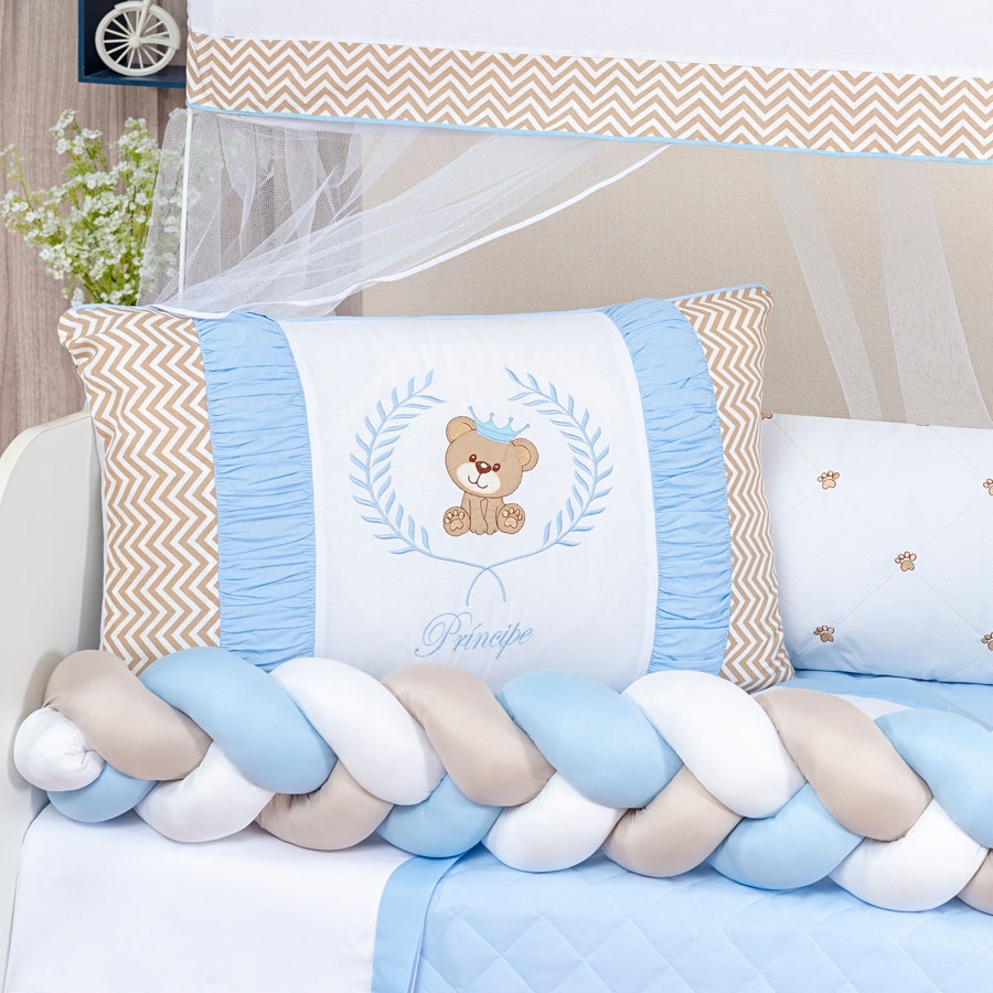 Kit Berço Mundo Azul Ursinho Teddy 11 Peças
