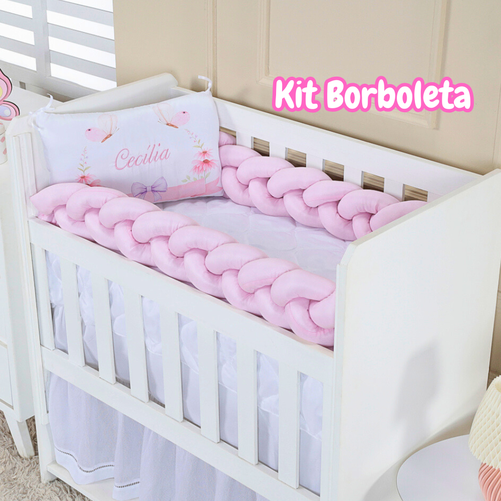 Kit Berço Padrão Americano ou Mini berço personalizado nome Travesseiro + trança Enviar nome no chat