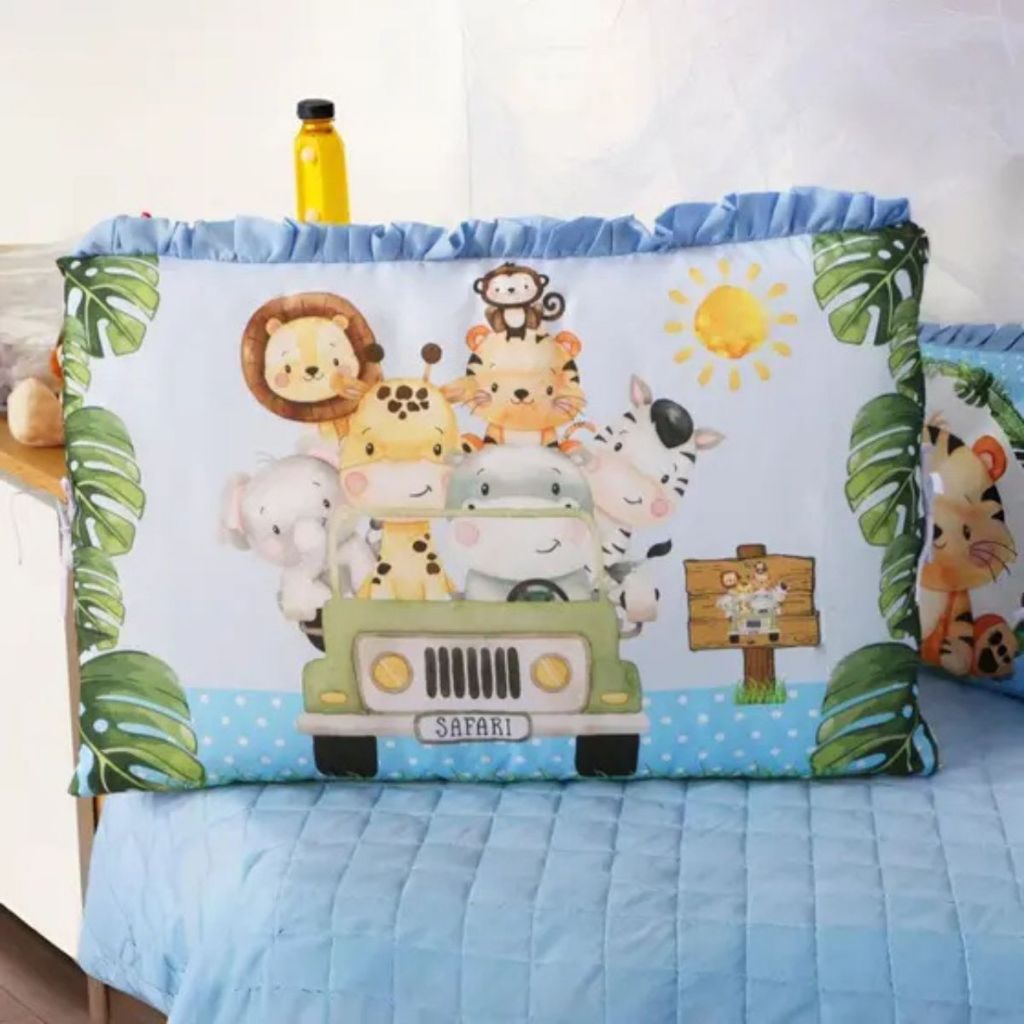 Kit Berço Padrão Americano Protetor com Almofadinhas 13 Peças Completo Para Bebê - Safari Azul