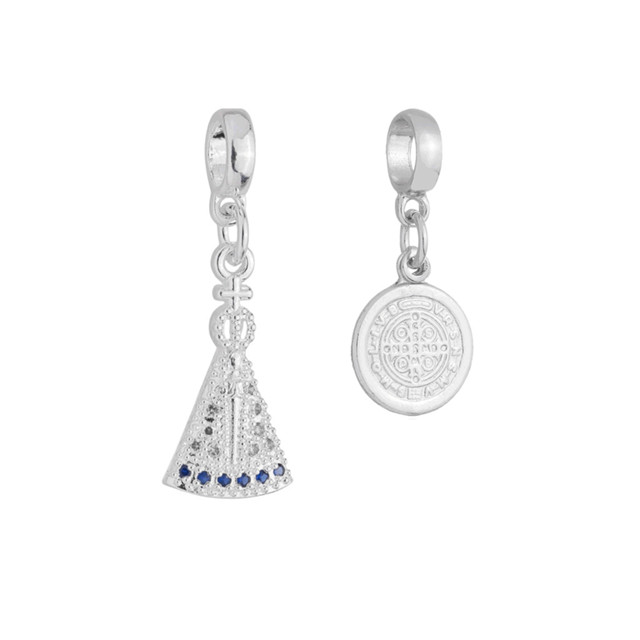 Kit Berloques Nossa Senhora e Medalha São Bento Banhado a Prata 925