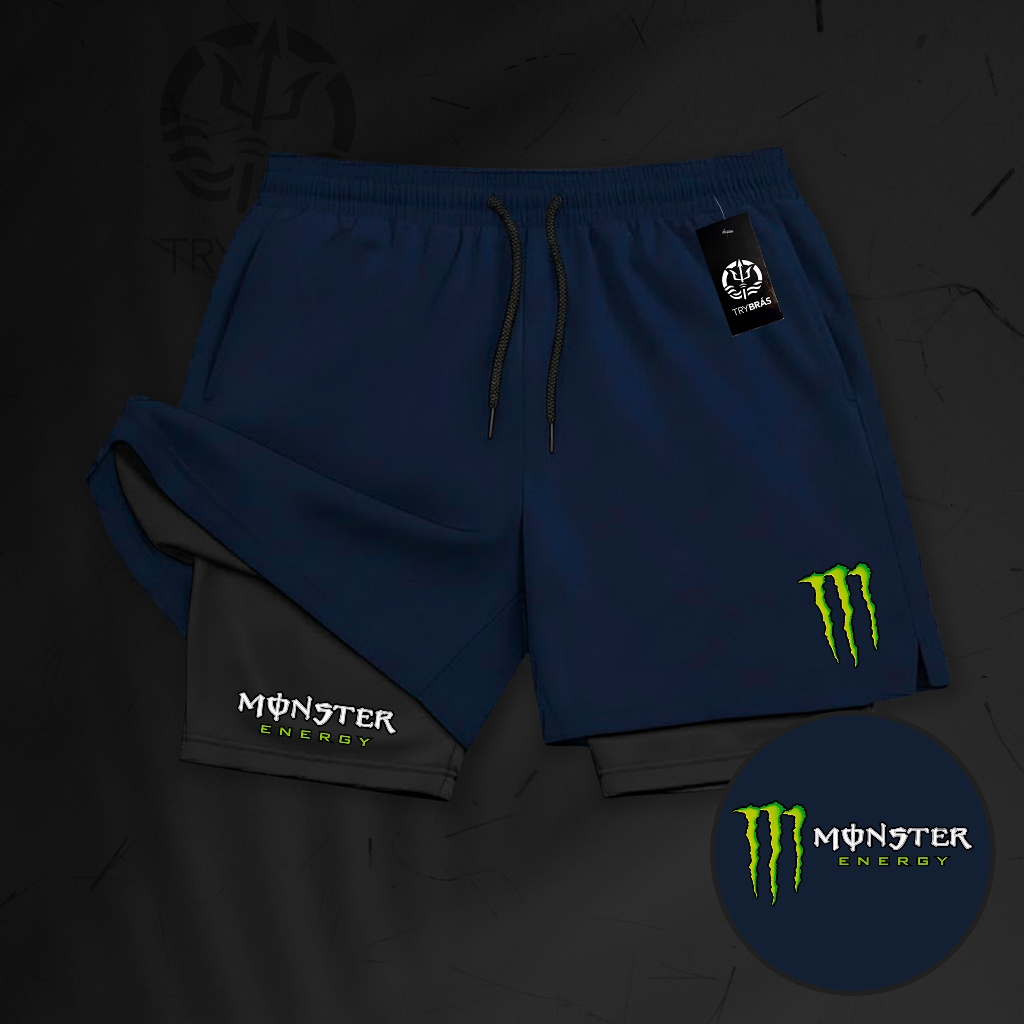 KIT Bermudas de Compressão Dry-Fit GDA 2 em 1 - (Monster 02) - Com Elastano e Bolso Interno