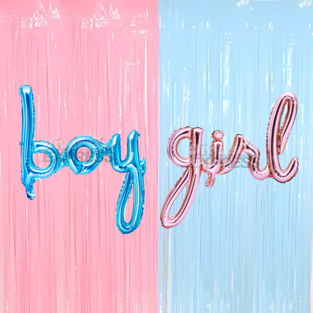 Kit bexigas e cortinas para decoração balões para chá revelação bebe menino menina boy girl