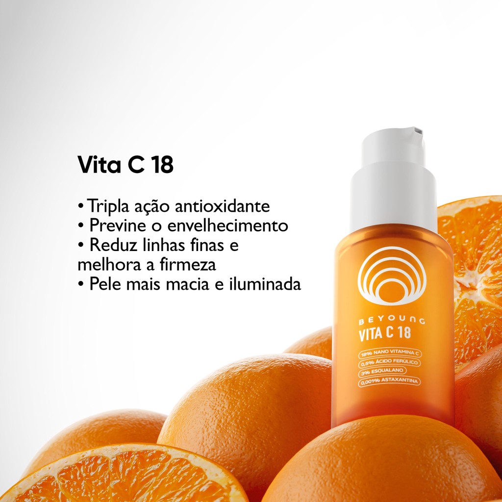 Dupla de tratamento antioxidante para os primeiros sinais da idade: menos rugas e linhas de expressão e melhora do viço e da textura da pele! Este kit contém: - 1 Vita C 18 30ml: Sérum com tripla ação antioxidante que previne o envelhecimento, reduz linhas finas e deixa sua pele mais uniforme, macia e iluminada. - 1 Booster 30ml: Sérum multifuncional com ativos rejuvenescedores e antioxidantes. Ideal para os primeiros sinais de idade.