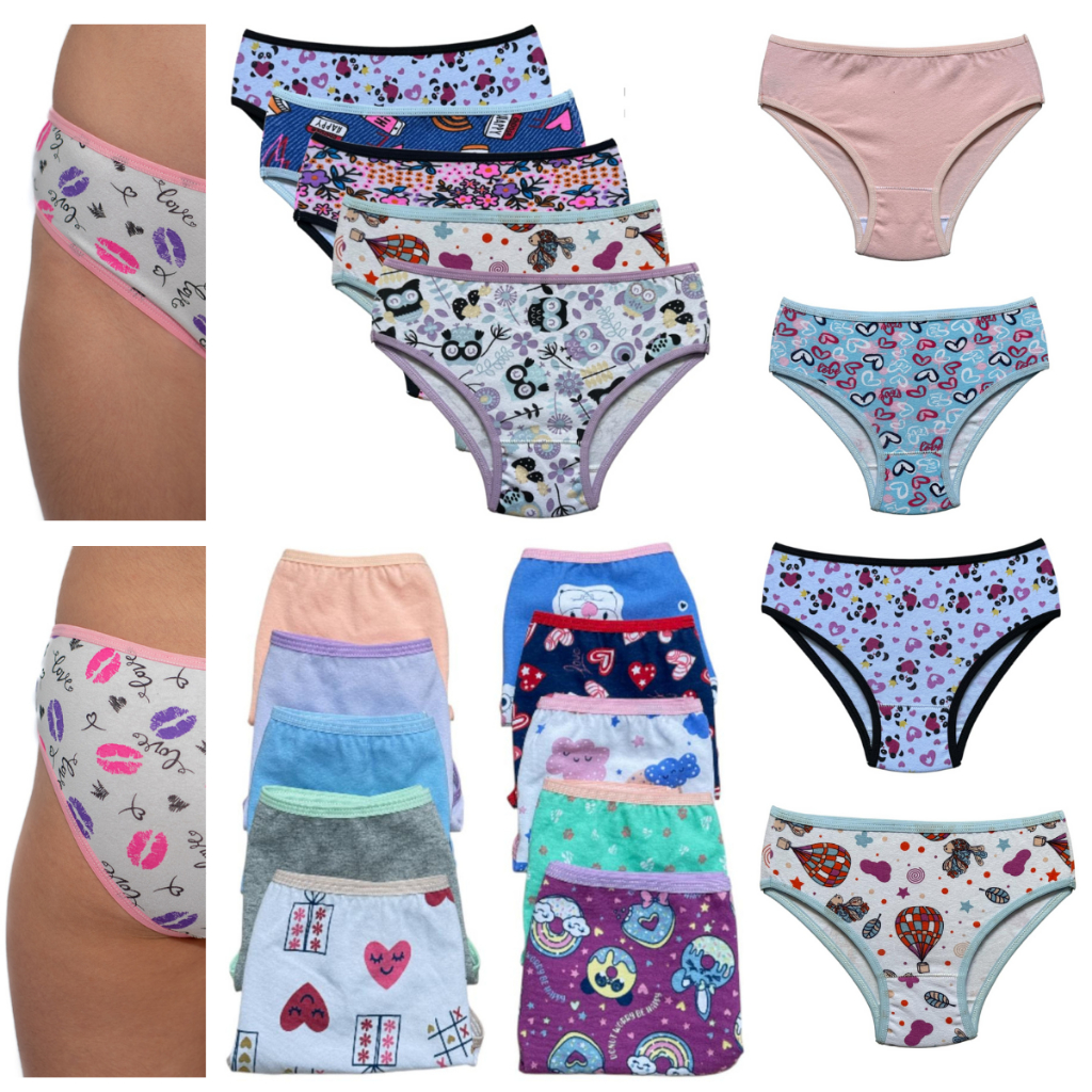 kit BIG LOVE com 10 ou 6 Calcinhas Algodão Infantil Juvenil Menina Moça para Criança de 7 a 15 anos