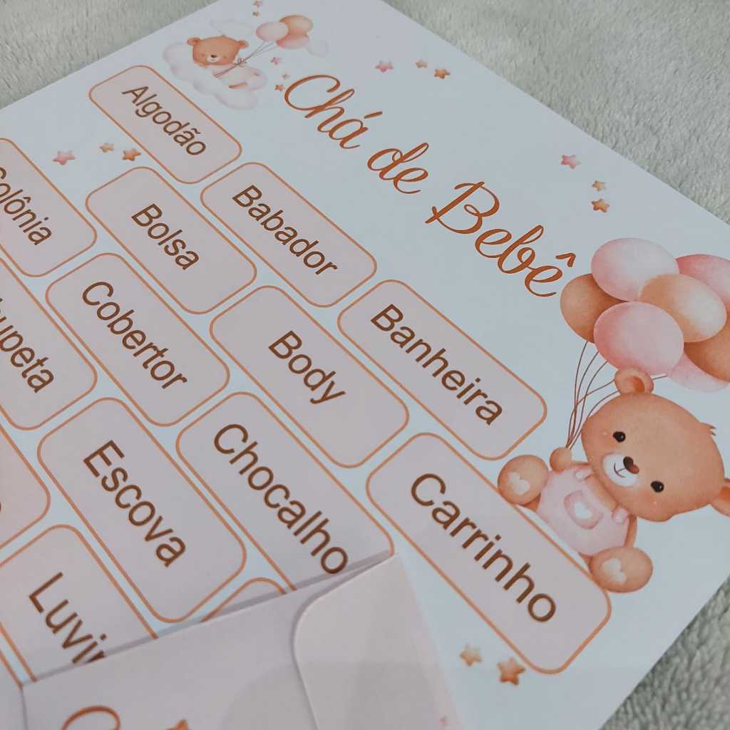 | Kit Bingo Chá de Bebê - Ursinha Balões (rosa com marrom) este produto | R$ 29,99 | — | 5.0/5 | 104 |