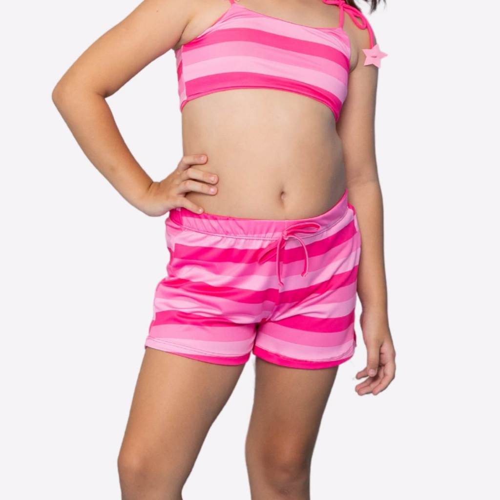 Kit Biquíni Dupla Face + Shorts Menina Proteção Solar Uv Infantil Praia