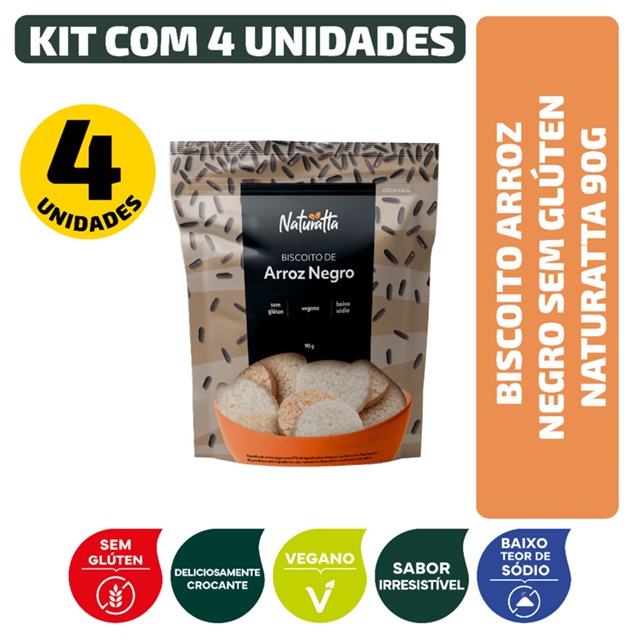 | Kit Biscoito Arroz Negro Sem Glúten Naturatta 90G - 4 Unidades este produto | R$ 55,89 | — | 4.9/5 | 1 |