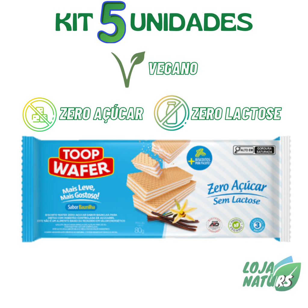 | KIT Biscoito Wafer Zero Açúcar Sem Lactose Vegano 78g - Toop Wafer este produto | R$ 49,90 | 30% | 5.0/5 | 6 |
