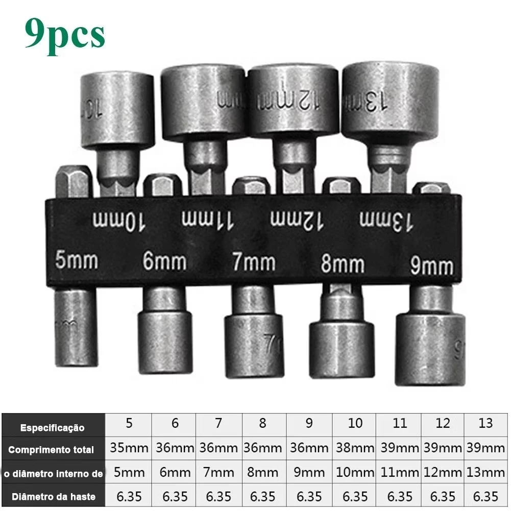Kit Bits Sextavado Soquetes Furadeira Parafusadeira 9 Pçs