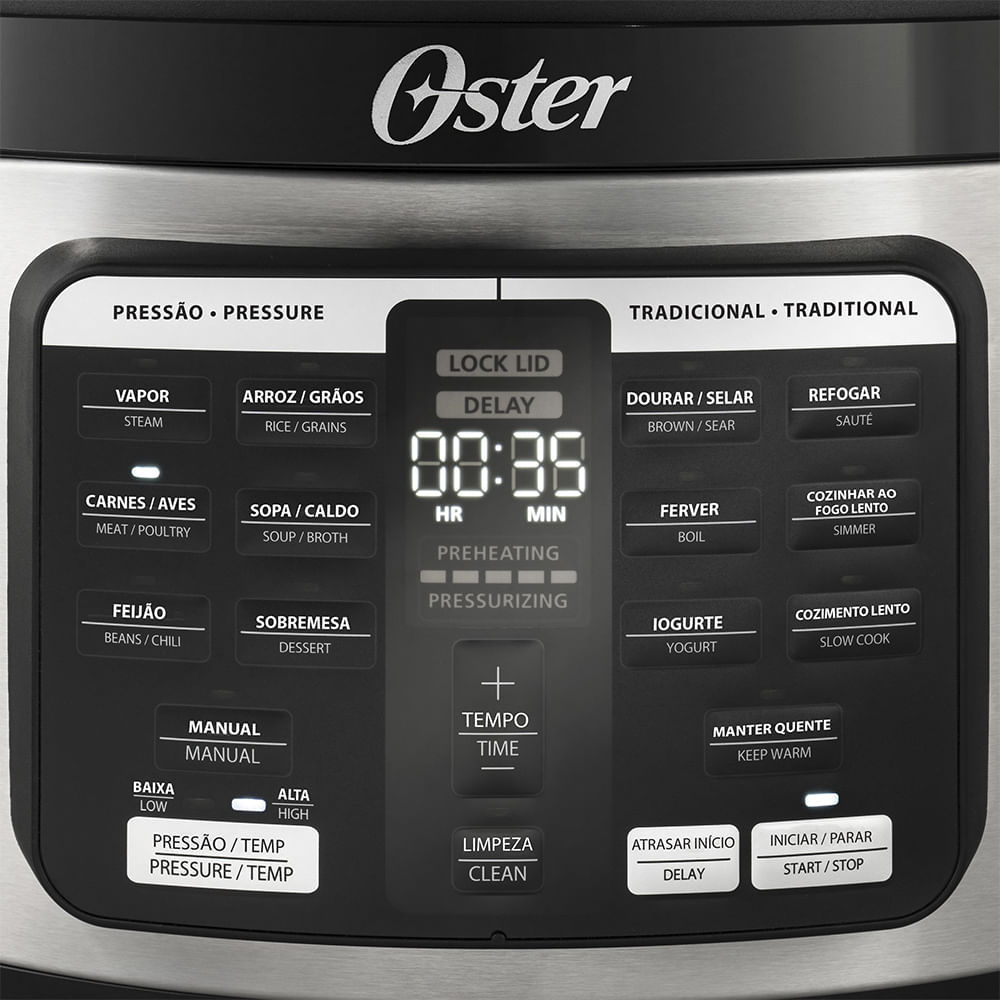 Esse kit contém os seguintes itens: Blender Power Inox Oster com 2 Jarras To Go - OBLD750 Na sua vida dinâmica, não podem faltar as receitas saudáveis preparadas pelo Blender Inox Oster®. Ele traz 2 opções de jarras TO GO para você otimizar seu tempo e levar mais sabor para onde for: um copo grande e super resistente em tritan e outro em inox que mantém a bebida fresca por mais tempo. - 2 Jarras To Go: A Versatilidade que você Precisa: Leve sua bebida para onde quiser! A jarra de tritan de 600ml é resistente e muito leve, e a outra em inox de 475ml mantém a bebida fresca por mais tempo. Experimente como é fácil e rápido preparar bebidas como sucos, vitaminas, shakes e muito mais. - Alto Desempenho para Facilitar sua Vida: Com 4 lâminas em aço inox, tritura com eficiência frutas, vegetais e até gelo, oferecendo alta performance para as receitas. E o botão ON/OFF oferece praticidade, garantindo que suas bebidas fiquem no ponto certo. - Prático e Fácil de Limpar: Simples de usar, permitindo levar suas bebidas com você, e prático de preparar e limpar, usando apenas um copo. É desmontável para facilitar ainda mais a limpeza. - Design Inovador: e resistente: Corpo em inox que confere estilo e durabilidade, além de oferecer a máxima eficiência no preparo de suas bebidas. - Potência que Garante o Sabor: O seu Blender Inox Oster® tem 700W de potência, proporcionando preparar com mais rapidez e eficiência as mais deliciosas receitas de bebidas. Dimensões [LxAxP]: 130x365x125mm Selo de Segurança OCP SGS Garantia (meses): 12 Panela de Pressão Elétrica Multifunções 5,7L Oster - CKSTPCECOV57 A Panela Elétrica Multifunções Oster® é a solução para tornar a rotina da sua cozinha ainda mais fácil e ágil. Cozinhe 70% mais rápido do que usando fornos convencionais e realize preparos com 2x mais velocidade que uma panela de pressão tradicional. • 5,7 L DE CAPACIDADE • 70% MAIS RÁPIDO QUE FORNOS CONVENCIONAIS • 2X MAIS VELOZ QUE PANELAS DE PRESSÃO • 15 FUNÇÕES • FORMATO OVAL - MAIS ECONOMIA: MENOS ÁGUA, ENERGIA E GÁS Nossa panela elétrica usa menos água para cozinhar, pois não libera tanto vapor. Faz você ganhar tempo, porque cozinha mais rápido. Traz economia, não usa o gás de cozinha. - 15 FUNÇÕES PRÉ-PROGRAMADAS Prepare: Arroz e Risotos; Massas; Carnes; Vegetais; Grãos e Caldos; e Sobremesas. Aproveite a agilidade de escolher entre as funções: pressão, panela de arroz, Slow Cooker, refogar, selar, ferver, manter aquecido, molhos, aves e carnes, feijão, sopa, grãos, iogurte, sobremesas e autolimpeza. Todas com apenas 1 clique. - DESIGN OVAL CAPACIDADE DE 5,7L O design oval de grande capacidade possibilita acomodar os alimentos em pedaços maiores sem ter que cortar, picar ou empilhar. Prepare porções maiores, mais deliciosas e com a segurança de mexer suas receitas com uma só mão sem girar a panela. - SISTEMAS DE SEGURANÇA Você e sua família mais protegidos por um conjunto de sistema de segurança completo e eficaz, com sensores, válvulas, travas automáticas e manuais visíveis na tampa que trazem segurança as saídas de vapor. - BOTÃO PARA FÁCIL LIBERAÇÃO DE VAPOR O botão é posicionado em um local afastado da saída de vapor, trazendo ainda mais segurança durante o uso. BIOCERAMIC™ Revestimento Cerâmico – Com Infusão de Azeite – Durável – Fácil de Limpar - LIMPEZA RÁPIDA Elimine facilmente a sujeira e os odores da sua panela com o toque de apenas um botão. E MAIS Acessórios para tornar o seu uso ainda mais prático: Colher medidora, grelha e borracha de vedação para a tampa. PANELA ELÉTRICA MULTIFUNÇÕES Design multifuncional para a sua cozinha! Dimensões [LxAxP]: 435x300x320mm Selo de Segurança OCP UL Garantia (meses): 12