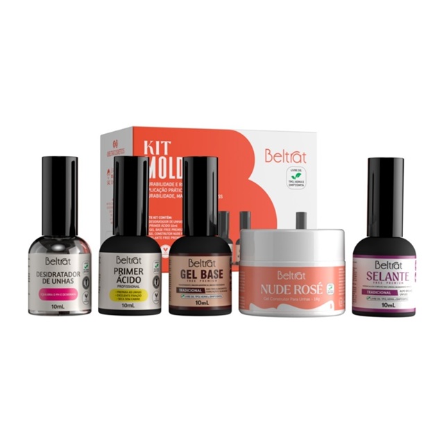 Kit Blindagem Molde F1(SEM TPO)Beltrat para Alongamento de Unhas em Gel + Gel Construtor Nude Rose 14g