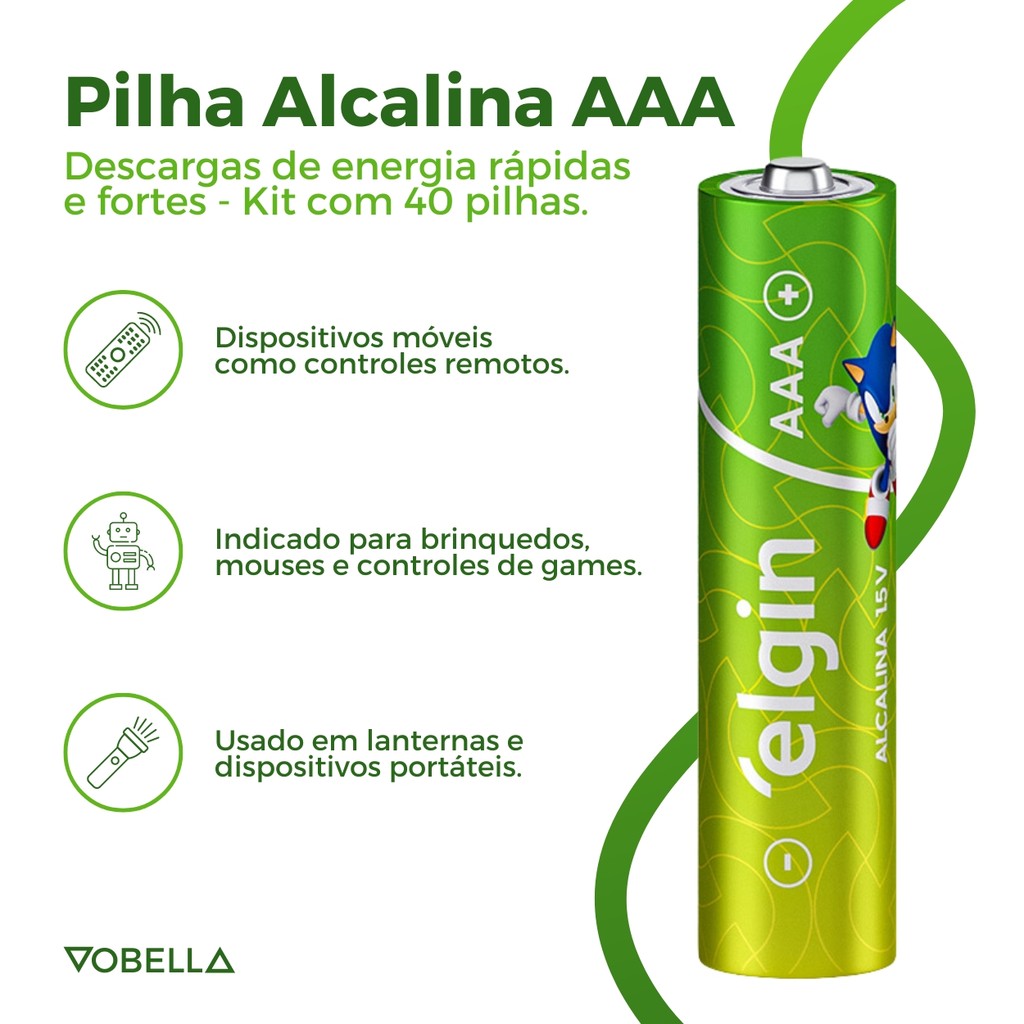 Kit Blister C/40 Unidades Pilhas Alcalinas Aaa Palito Elgin