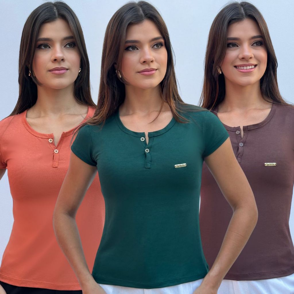 Kit Blusa Feminina Baby Look Viscolycra com Botões Frontais Moda Básica Conforto e Estilo