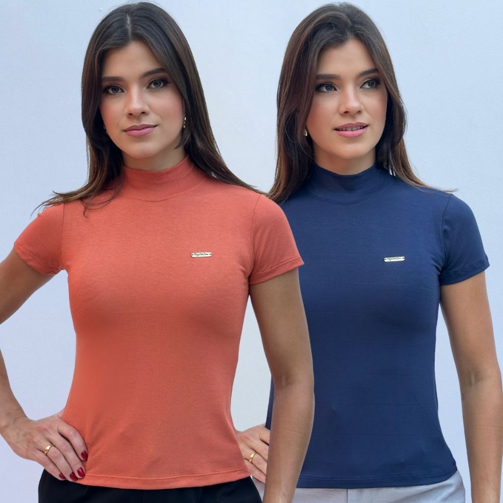 Kit Blusa Gola Alta Baby Look Feminina Tecido Viscolycra Manga Curta Confortável Básica e Elegante