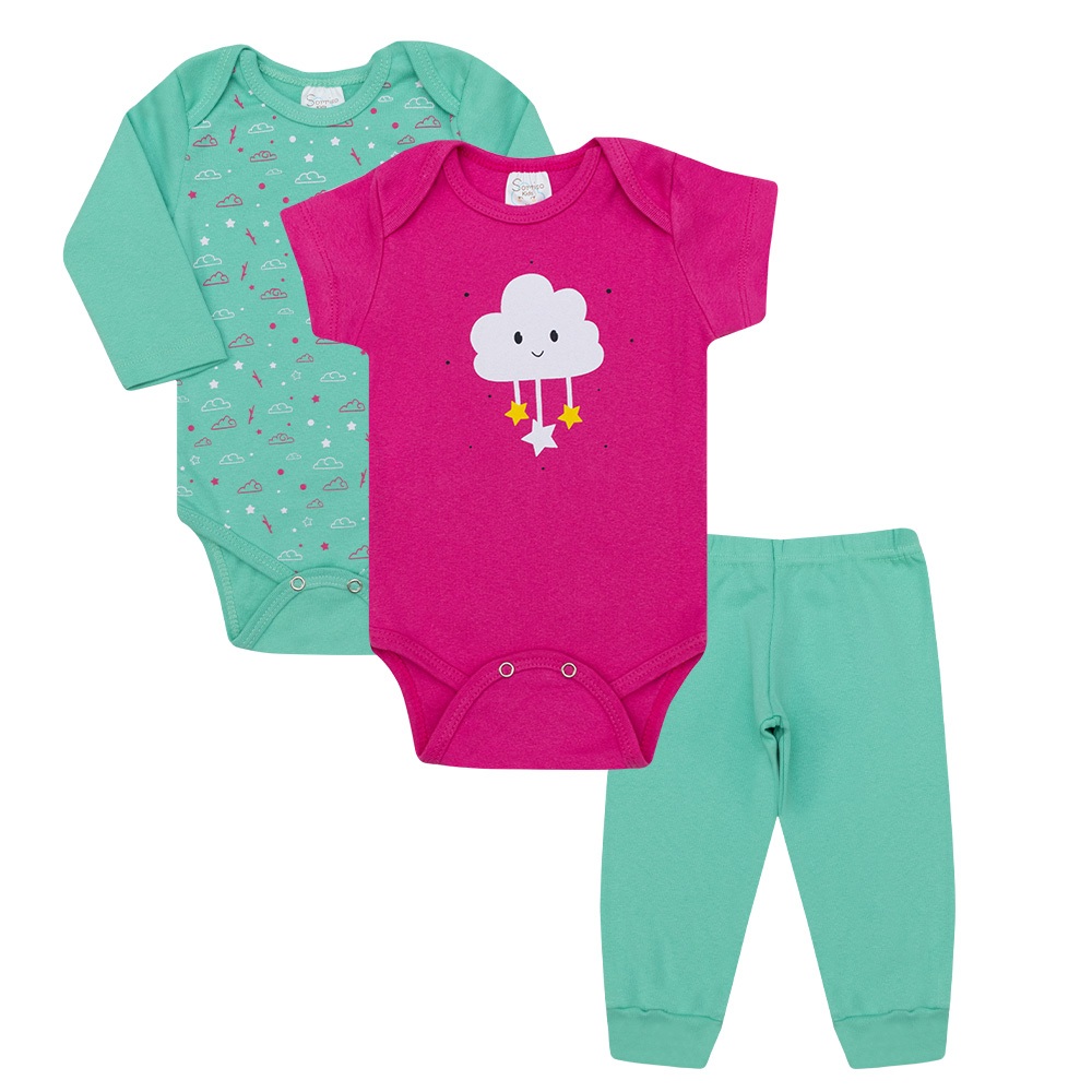 Kit body Bebê 3 peças, Manga Longa, Manga Curta e Calça Roupas de Bebê