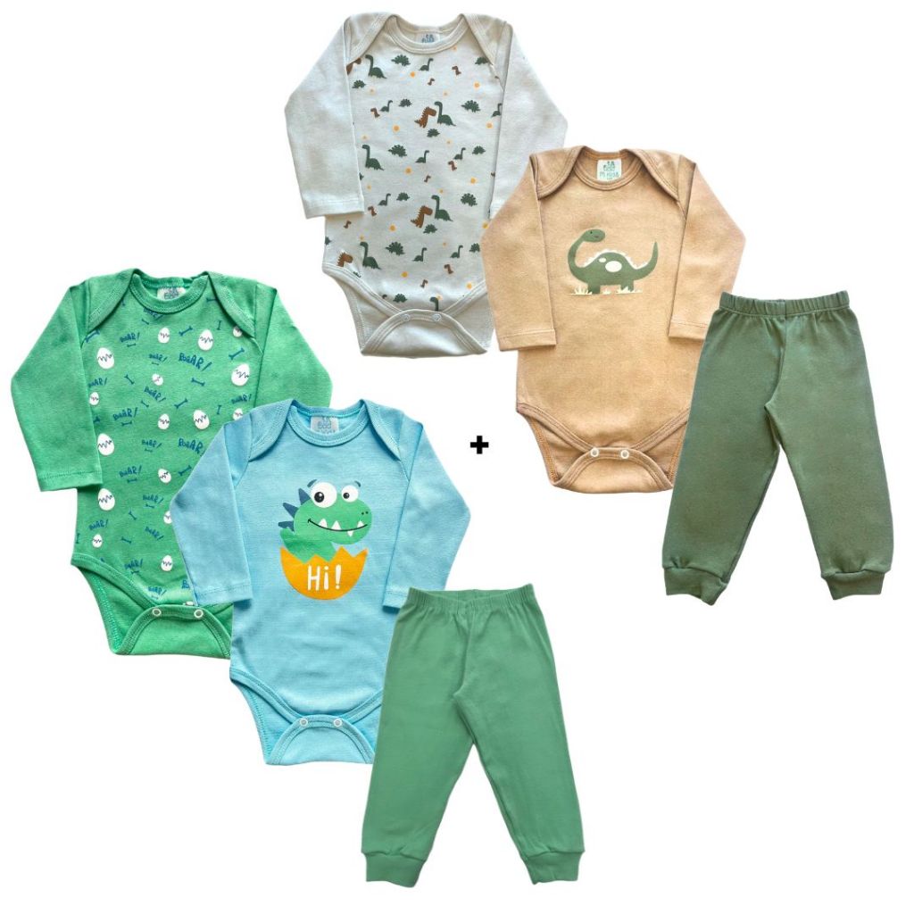 | kit 4 peças mijão calça e body manga longa infantil bebe masculino ... | R$ 27,90 | 22% | 4.7/5 | 6 mil |