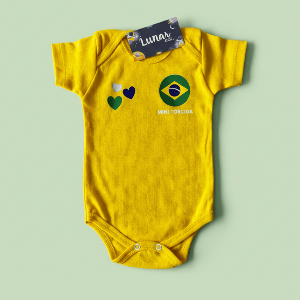 Kit Body Bebê Saia Temático Brasil Copa do Mundo - Personalizado - Amarelo - Menina - Mesversário