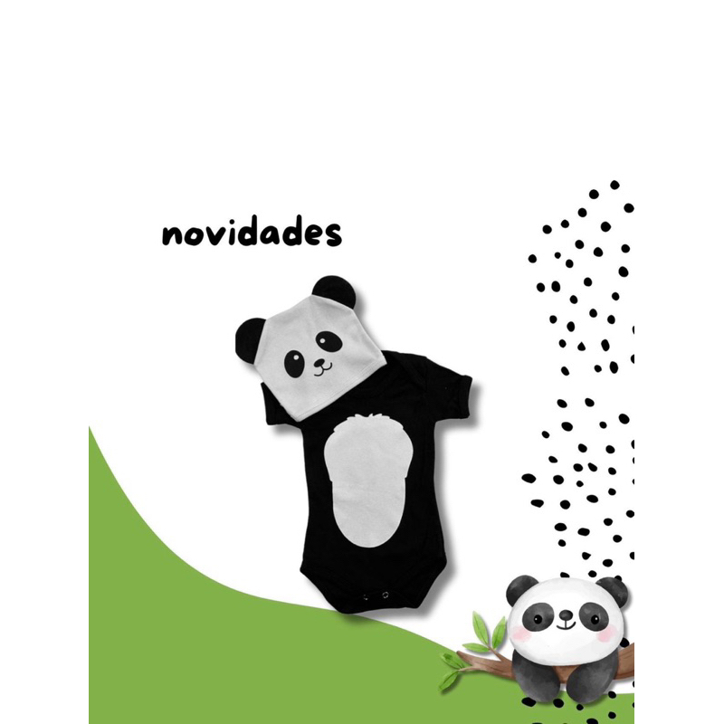 Kit Body Bebê - Urso Panda com Touquinha 1