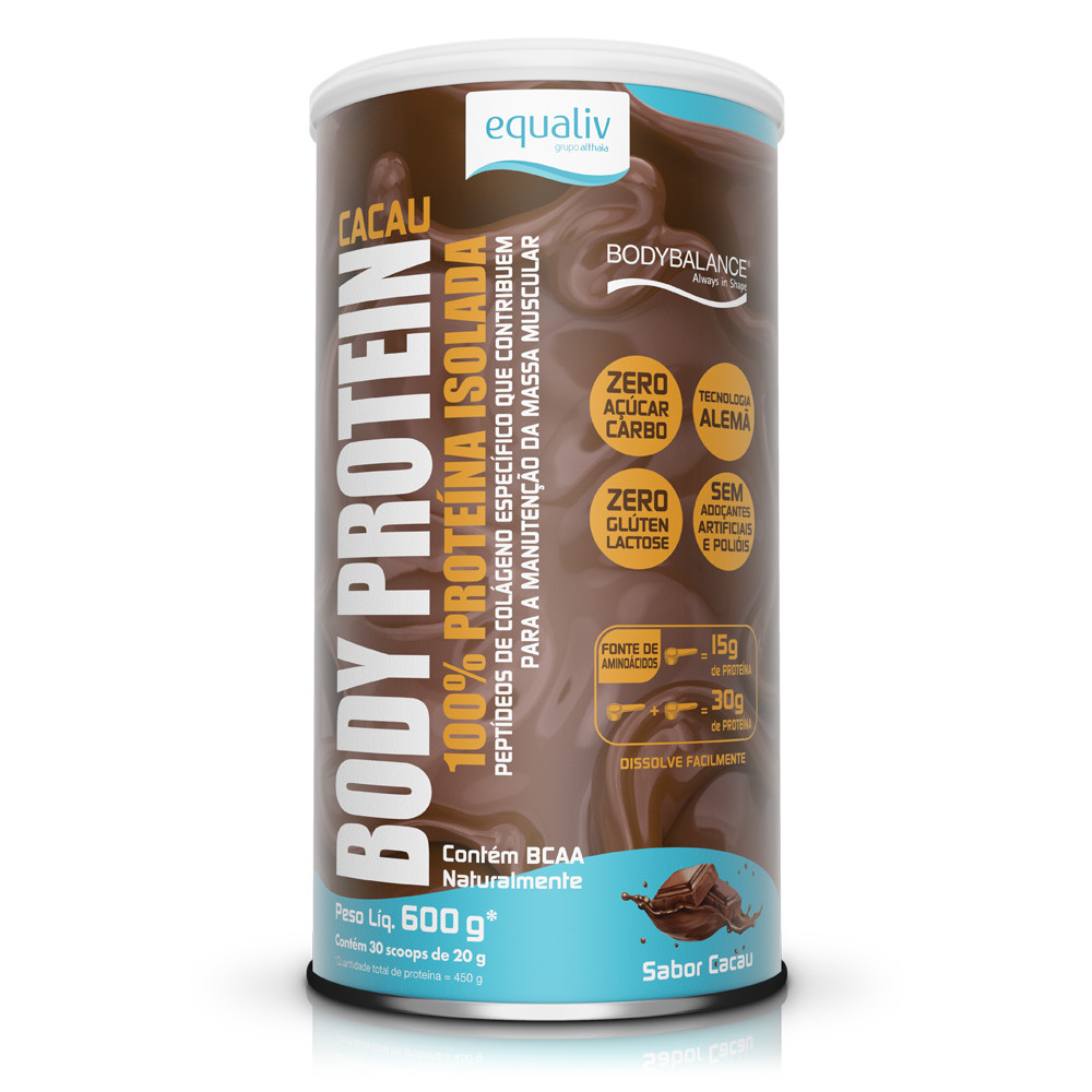 Kit Composto por: 1 Body Protein Cacau - 600g - Equaliv Body Protein Cacau é uma proteína isolada com tecnologia, a base de peptídeos de colágeno específico para os músculos. Body Protein não é proveniente do soro do leite, sendo assim, pode ser consumido tranquilamente por todos aqueles intolerantes à lactose. 6 - Body Protein Cacau – 250ml - Não exceder a recomendação diária de consumo indicada na embalagem. Este produto não é um medicamento.