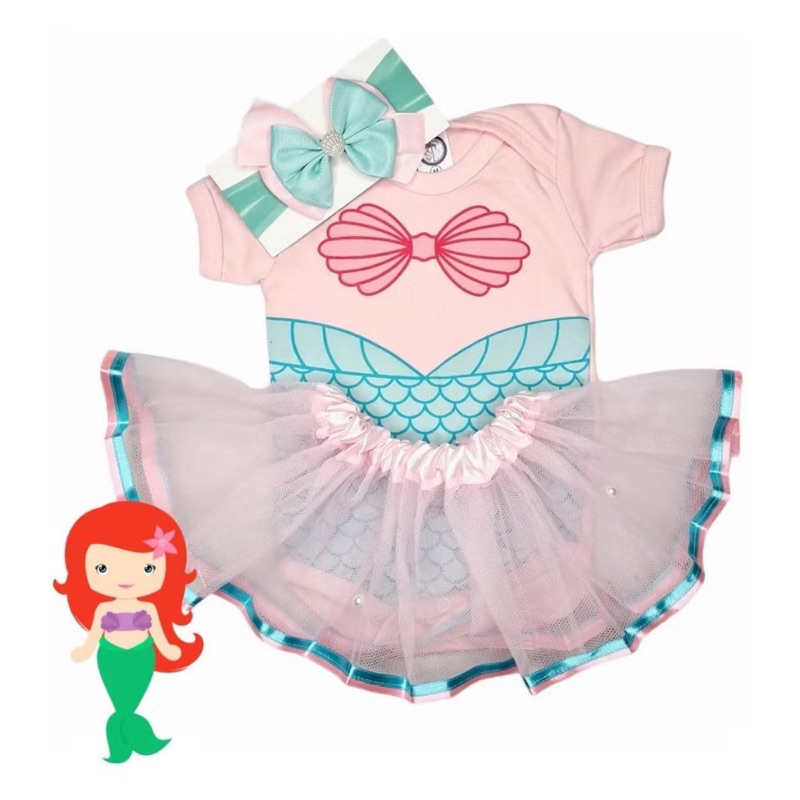 Kit Body + Saia + Laço Bebê Fantasia Mesversario Menina - Escolha o Modelo(K-3)