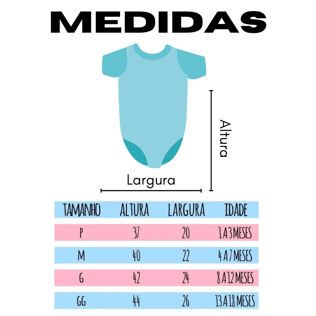 Conteúdo: Body+Short/ Nesse anúncio tem opção de comprar apenas o Body. Bodys produzidos em : - Malha Suedine 100% algodão; - Ótimo acabamento, costura e tecido de excelente qualidade - Estampa Silkscreen á base d`água que não irrita a pele do bebê e promove conforto; - Fechamento em botões de pressão entre as pernas, facilitando a troca de fraldas. Medidas: - Tamanho P (0-3 MESES): 38cm (A) x 20cm (L) - Tamanho M (3-8 MESES): 40cm (A) x 22cm (L) - Tamanho G (8-12 MESES): 42cm (A) x 24cm (L) Instruções de lavagem: - Lavar à mão; - Não usar alvejantes; - Secar à sombra; - Não deixar de molho; - Passar do avesso; - Não usar máquina de lavar ou secadora. *FAVOR CONFIRMAR O TAMANHO E A ESTAMPA DESEJADOS ANTES DE FINALIZAR E EFETUAR A COMPRA ! *EM CASO DE DÚVIDAS A RESPEITO DO TAMANHO SUGERIMOS LEVAR UM MAIOR! *PODE HAVER ALTERAÇÃO NA COR DO VIÉS . *IMAGENS ILUSTRATIVAS ATENDIMENTO AO CLIENTE Em caso de dúvidas após a compra, você pode entrar em contato conosco através do campo mensagens. AGORA CLICA EM COMPRAR E SE DIVIRTA MUITO COM SEU BABY!!! Para mais informações nos envie uma mensagem neste anuncio! Ficamos aguardando seu pedido. Vestimos bem quem você mais Ama. Temos diversos temas e modelos disponíveis.