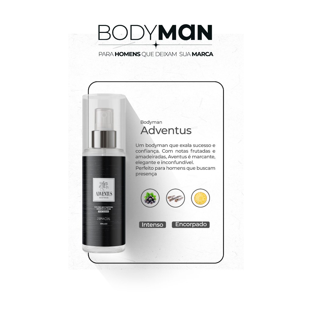 Kit Body Splash Enigma + Adventus 200ml Perfume Masculino Marcante | Body Splash Masculino Uma combinação feita para homens que querem marcar presença e não passar despercebidos. Esse kit une duas fragrâncias intensas e sofisticadas, que transmitem confiança, poder e atitude. Perfeito para quem busca um perfume masculino que vai do misterioso ao imponente, ideal para diferentes momentos do dia. Sobre as Fragrâncias: Enigma – Misterioso, elegante e envolvente Um aroma mais fechado e sofisticado, com toque amadeirado e quente. Transmite charme, profundidade e aquele ar de homem intrigante. Adventus – Marcante, fresco e poderoso Uma fragrância com frescor frutado e fundo amadeirado que transmite sucesso, liderança e confiança. É aquele cheiro que chama atenção e passa autoridade. Perfil Olfativo: Família: Amadeirado | Cítrico | Aromático Notas principais: Bergamota, Maçã, Abacaxi, Lavanda, Patchouli, Âmbar, Madeira, Almíscar Quando Usar: 🌤️ Dia: Excelente 🌙 Noite: Excelente 🔥 Perfeito para todas as ocasiões 📦 Detalhes do Produto: ✔ Contém 2 body splashes de 200ml cada ✔ Fragrâncias masculinas marcantes e sofisticadas ✔ Fixação leve a moderada ✔ Ideal para reaplicar ao longo do dia ✔ Perfeito para uso diário 💡 Dica de uso: Use o Adventus durante o dia para um cheiro mais fresco e imponente, e o Enigma à noite para um toque mais intenso e envolvente.