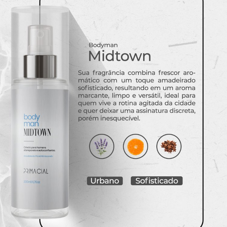 Kit Body Man Adventus + Enigma + Barbarius + Midtown 200ml Perfume Masculino Completo | Os Mais Queridinhos da Primacial Um kit com os quatro body splashes masculinos mais desejados. Aqui você tem o equilíbrio perfeito entre frescor, elegância e intensidade, com fragrâncias que já conquistaram clientes e se tornaram as favoritas da linha. Ideal para quem quer estar sempre cheiroso em qualquer ocasião. Sobre as Fragrâncias: Adventus – Sofisticado, marcante e confiante Uma fragrância com notas frutadas e amadeiradas que transmite sucesso, elegância e presença. Ideal para quem quer um perfume imponente e moderno. Enigma – Moderno, limpo e versátil Um aroma fresco e confortável, com aquele efeito de banho tomado. Perfeito para o dia a dia, trabalho e momentos em que você quer leveza com sofisticação. Barbarius – Intenso, magnético e irresistível Um dos mais vendidos, conhecido pelo seu frescor marcante com fundo amadeirado envolvente. É aquele perfume que chama atenção e rende elogios. Midtown – Limpo, elegante e sofisticado Um perfume leve e refinado, com sensação de homem bem arrumado. Ideal para uso diário e ambientes profissionais. Quando Usar: ️Dia: Excelente (Midtown e Enigma) Noite: Excelente (Barbarius e Adventus) ️Academia / Pós-banho: Perfeito (Enigma e Midtown) Trabalho: Ideal (Midtown) Encontros: Perfeito (Barbarius e Adventus) Detalhes do Produto: - Contém 4 body splashes de 200ml cada - Os mais vendidos da linha masculina - Perfis complementares (fresco, elegante, moderno e intenso) - Ideais para reaplicação ao longo do dia Dica de uso: Aplique com a pele hidratada para melhor fixação. Como o body splash tem perfumação mais leve que um perfume, o ideal é reaplicar ao longo do dia para manter o frescor e o cheiro sempre presente.