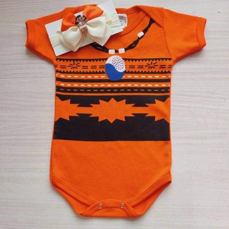 Kit Body Tematico de Bebe Mesversario Moana Laço e Tule Princessas Fantasia Completa
