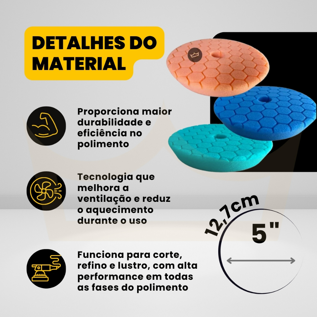 Kit Boinas Espuma Colmeia 5 Polegadas Corte Refino Lustro Kers Profissional Polimento