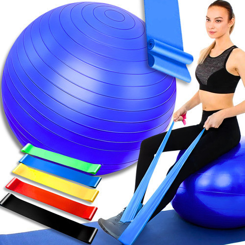 Kit Bola de Pilates 65cm Fisioterapia + 5 Elástico para Exercícios Mini Band + Faixa Elástica Treino