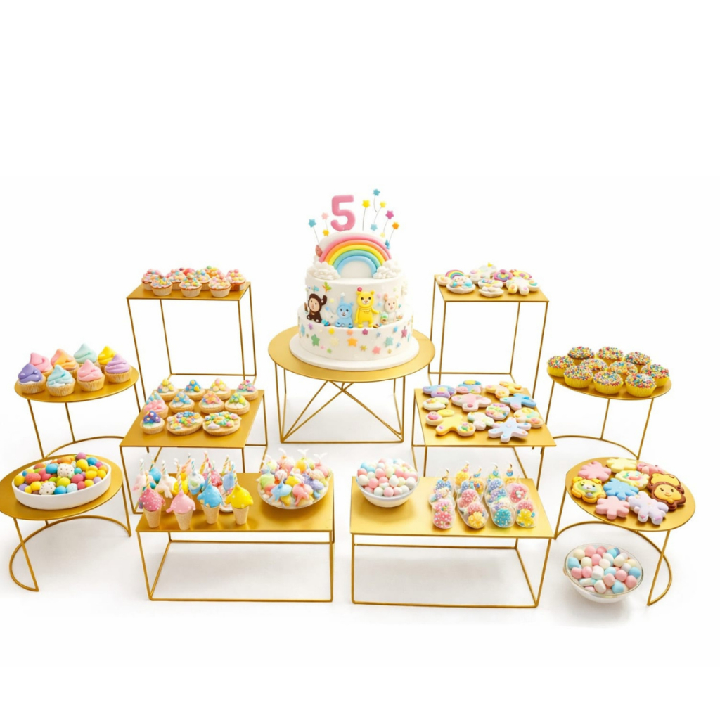Kit Boleira Bandeja Composto por 11 peças para Decoração com Base de Chapa De Ferro Fixa
