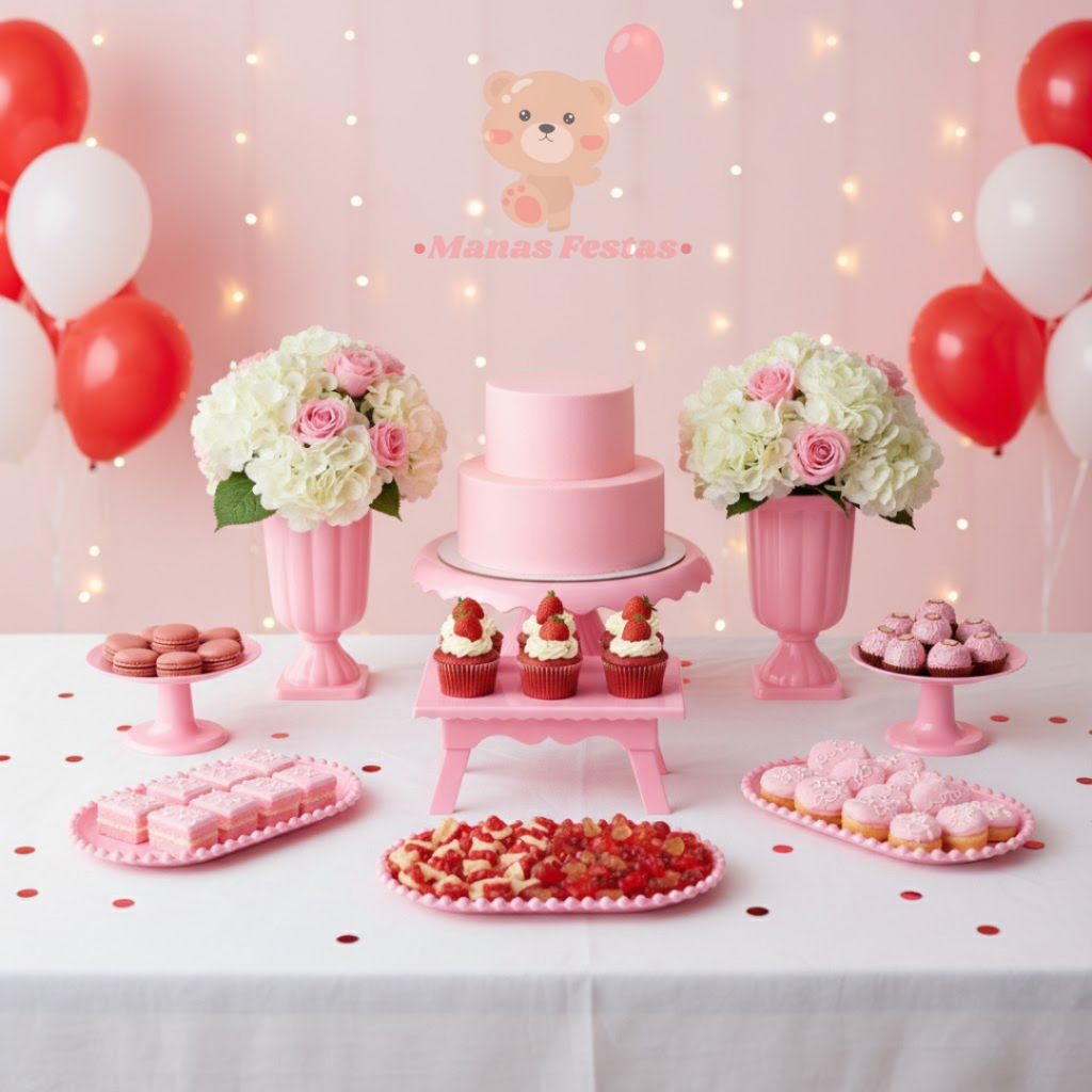 Kit Boleira Cake Renda 22cm + 2 Vasos Grego + 2 Mini Cake + 1 Mesinha + 3 Bandeja Pérola Oval Transforme sua mesa em um verdadeiro espetáculo com este kit completo de decoração, pensado para trazer elegância, harmonia e sofisticação a qualquer ocasião especial. 🎀 Composição do Kit: 1 Boleira Cake Renda 22cm: perfeita para expor bolos, tortas ou doces maiores com estilo e destaque. 2 Vasos Gregos: ideais para flores, arranjos ou doces decorativos, adicionando um toque clássico e refinado. 2 Mini Cakes: mini boleiras encantadoras para cupcakes, docinhos ou lembrancinhas. 1 Mesinha Decorativa: excelente para criar níveis na composição e dar volume à decoração. 3 Bandejas Pérola Oval: charme e delicadeza para organizar docinhos, mini salgados ou enfeites. Destaques: Design sofisticado e acabamento impecável, combinando textura, brilho e equilíbrio visual. Disponível em diversas cores, adaptando-se facilmente ao tema da sua festa. Material leve, resistente e reutilizável, garantindo praticidade e durabilidade. Ideal para festas infantis, casamentos, chás, aniversários e eventos corporativos. Com o Kit Boleira Cake Renda + Vasos Gregos + Mini Cakes + Bandejas Pérola, sua mesa ganha um toque de luxo e organização, encantando todos os convidados e valorizando cada detalhe da sua decoração!