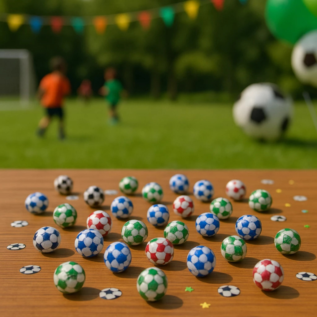 Mini chocolates em formato de bola de futebol, embalados individualmente em papel laminado colorido. O pacote traz cerca de 50 unidades (340 g) com textura crocante por fora e recheio cremoso de chocolate. As bolinhas têm aproximadamente 2,5 cm e oferecem ótimo impacto visual para mesas temáticas, lembrancinhas e festas infantis. Práticas, saborosas e com acabamento brilhante que remete ao tema futebol. Ingredientes: açúcar, gordura vegetal hidrogenada, cacau em pó natural, soro de leite em pó, aroma de baunilha e lecitina de soja. Alérgicos: contém leite, derivados de leite e de soja. Pode conter traços de amendoim. QUANTIDADE: APROX. 50 UNIDADES POR EMBALAGEM. PESO LÍQUIDO: 340 G CADA PACOTE. FORMATO: BOLINHAS DE CHOCOLATE TEMÁTICAS DE FUTEBOL. TAMANHO: DIÂMETRO APROX. 2,5 CM ALÉRGICOS: CONTÉM LEITE E SOJA. PODE CONTER AMENDOIM. NÃO CONTÉM GLÚTEN. Somos uma loja especializada em artigos de festa, confeitaria, embalagens e atacados em doces com lojas físicas no estado de São Paulo, desde 2002.