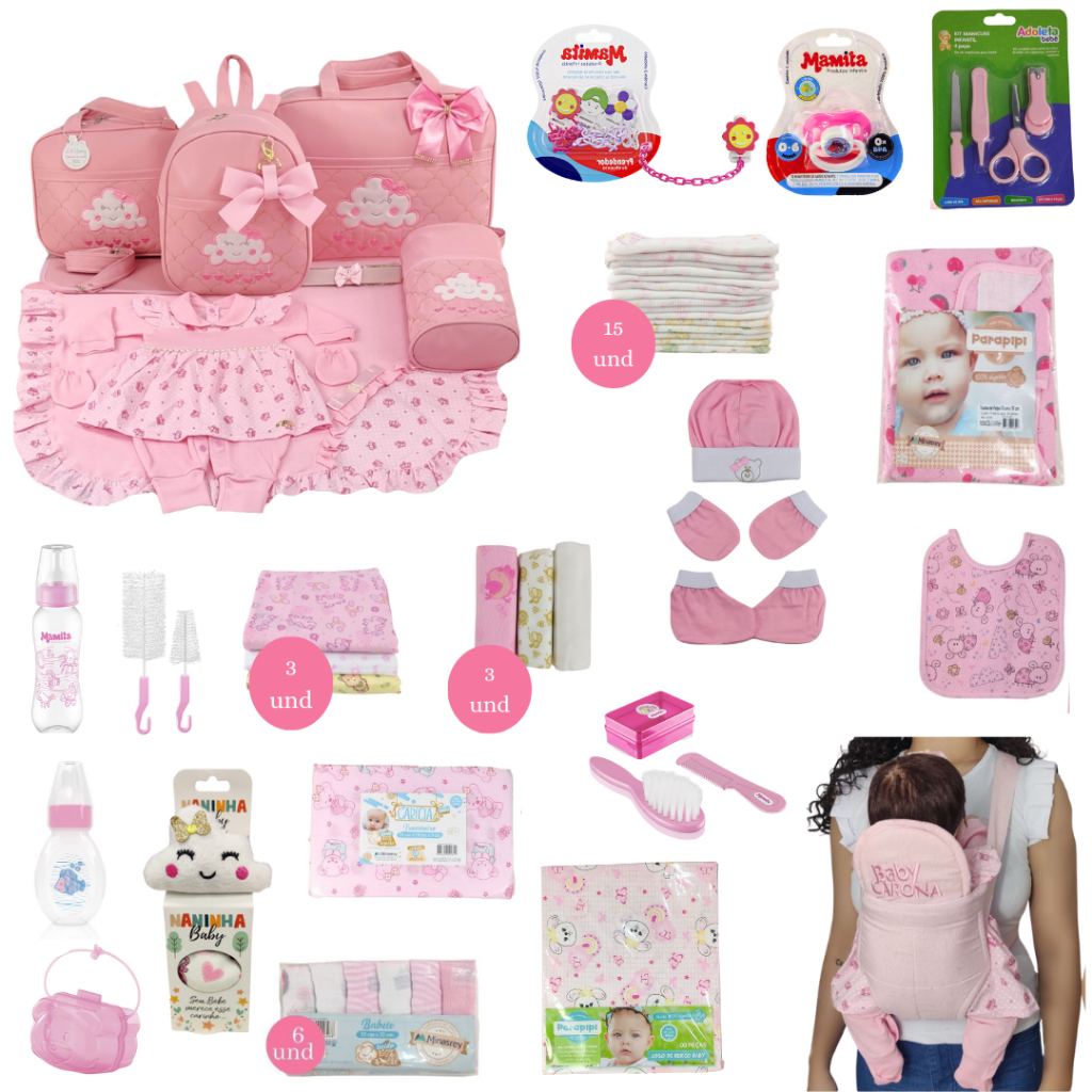 | Kit Bolsa de Maternidade + Saída Menina/Menino + Enxoval de bebê Co... este produto | R$ 328,70 | 5% | 4.9/5 | 10 |