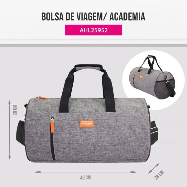 "Kit Bolsa de Viagem/Academia + Necessaire com Alça Lateral – Coleção VIBE | Jacki Design O Kit VIBE da Jacki Design reúne dois itens essenciais para quem busca praticidade, estilo e organização no dia a dia. Com design moderno e funcional, este conjunto é ideal para viagens, academia ou para quem precisa de acessórios versáteis e duráveis para a rotina. Composto por uma bolsa de viagem/academia espaçosa e uma necessaire com alça lateral, o kit oferece soluções completas para carregar seus pertences com segurança e praticidade, sem abrir mão do visual contemporâneo. Bolsa de Viagem/Academia VIBE Projetada para atender às necessidades do cotidiano, a bolsa possui amplo espaço interno, ideal para roupas, calçados, toalhas, itens de higiene ou equipamentos esportivos. Seu design clean com detalhes coloridos traz personalidade, enquanto os compartimentos adicionais facilitam o acesso e a organização. Destaques: Amplo compartimento principal com excelente capacidade de armazenamento Bolso frontal com zíper para acesso rápido a objetos pequenos Bolso lateral funcional para itens de uso frequente Alça de mão confortável Alça tiracolo ajustável e removível para mais praticidade Material resistente e de fácil manutenção Dimensões: 49 cm (C) x 28 cm (L) x 28 cm (A) Material: Poliéster resistente Necessaire com Alça Lateral VIBE Compacta, versátil e funcional, a necessaire da coleção VIBE é perfeita para organizar itens pessoais, de higiene ou até mesmo materiais escolares. Pode ser utilizada como estojo ou necessaire de viagem. A alça lateral garante mais praticidade no transporte. Destaques: Compartimento espaçoso com fechamento em zíper Alça lateral para facilitar o manuseio Estrutura flexível, ideal para diferentes tipos de uso Pode ser usada como estojo, necessaire ou organizador de bolsa Dimensões: 23 cm (C) x 10 cm (L) x 14 cm (A) Material: Poliéster Benefícios do Kit Combinação prática para diversas situações: academia, viagens, escola ou uso diário Estilo moderno com detalhes coloridos, que trazem identidade à sua rotina Produtos duráveis e de fácil limpeza Ideal para quem busca funcionalidade sem abrir mão do visual Este kit da coleção VIBE é a escolha certa para quem leva uma vida dinâmica e precisa de acessórios que acompanhem o ritmo com eficiência e elegância. Conheça também os outros produtos da linha e monte seu conjunto completo com a qualidade Jacki Design." Acompanha o produto: • Bolsa de Viagem, necessaire