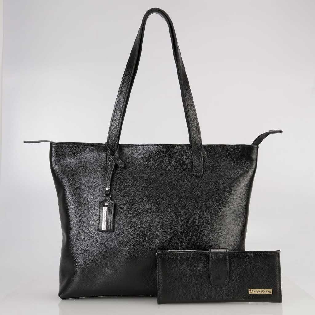 Kit Bolsa Feminina Grande Sacola Couro Legitimo e carteira