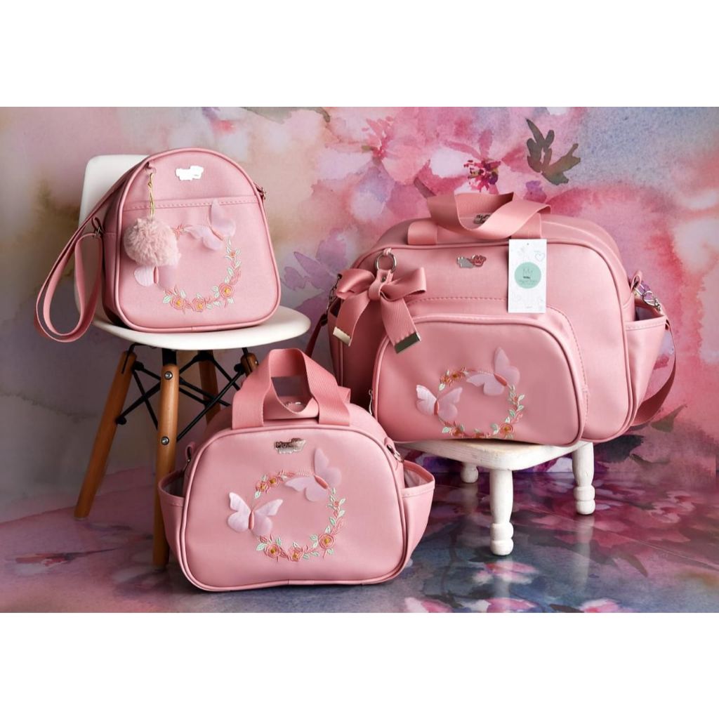 Kit bolsa Maternidade com Porta Cartão Vacina 3d borboleta Luxo 4 peças