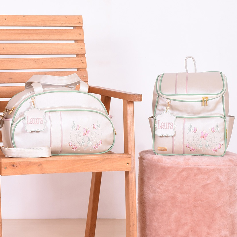 | Kit Bolsa Maternidade Personalizada Jasmin Champanhe/Verde/Rosê - 0... este produto | R$ 539,90 | 24% | 5.0/5 | — |