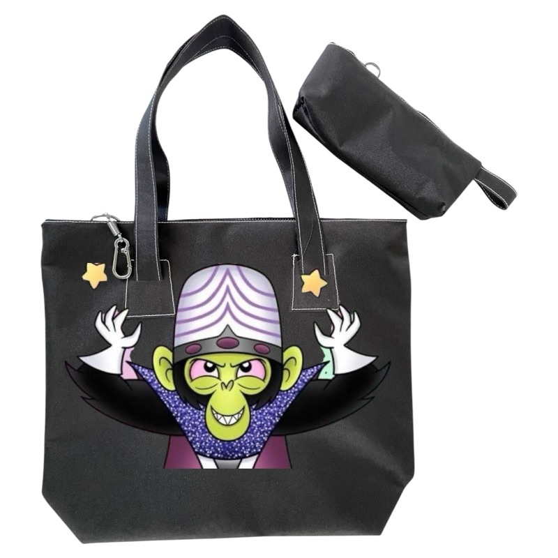 kit bolsa + Necessarie Moda Praia Piscina Meninas Super Poderosas Eco Bag Impermeável Lona Nylon Fecho Ziper Ecológica