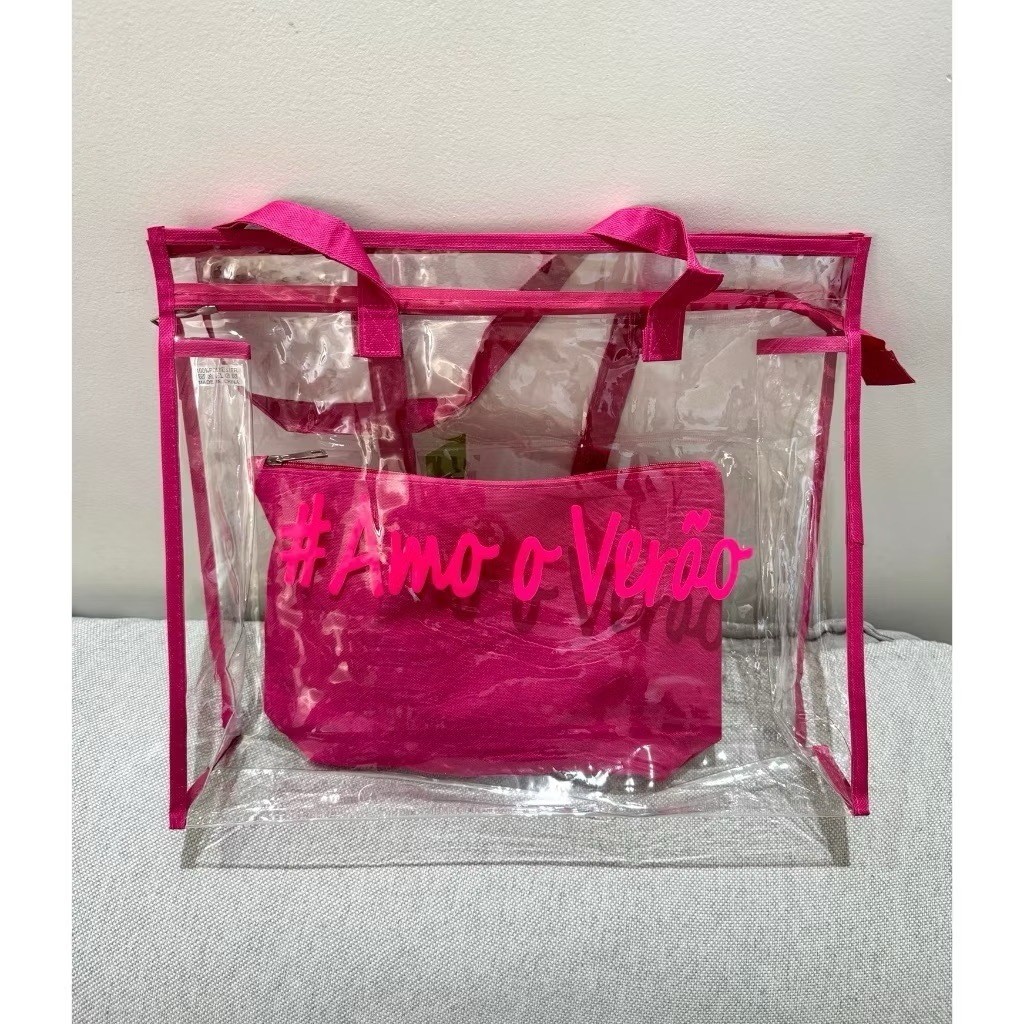 Kit Bolsa Transparente de grande capacidade Sacola de Praia Feminina Silicone Com Necessaire Amo O Verão Impermeável