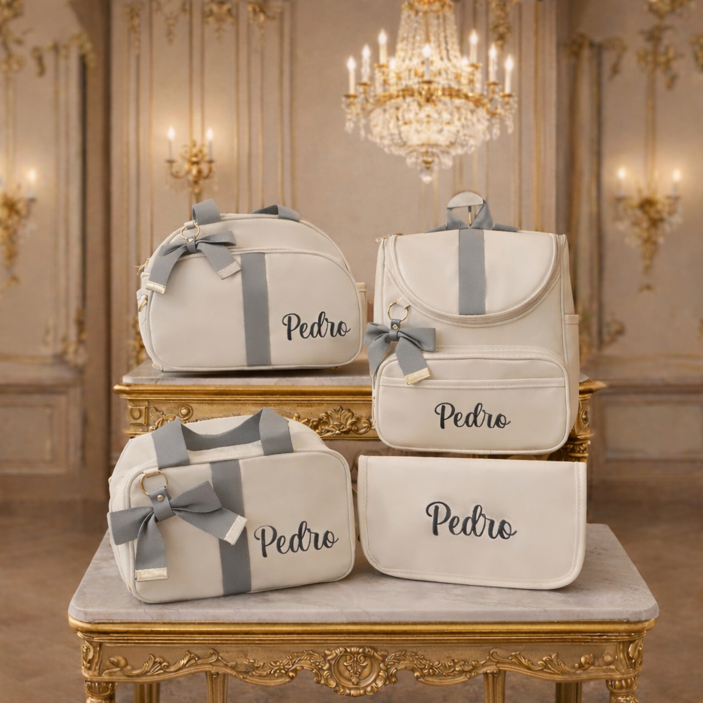 ⚠ ATENÇÃO! Após a confirmação do pagamento, envie o nome do seu bebê pelo chat do vendedor para que possamos personalizar seu kit do jeitinho que você escolheu. Importante: Se não recebermos essa informação em até 24 horas o kit será enviado sem personalização 📌 Importante: Podemos alterar as cores das fitas/laços/bordado, mas a cor do tecido, material, a fonte e arte de bordado são padronizados e não podem ser alterados. A quantidade de peças dos kits também é padronizada e não pode ser mudada. ✦ Por Que Escolher Nossas Bolsas Maternidade? ✦ ✅Os kits maternidade da coleção realeza são super uteis e completos compostos por mochila, bolsa de colo, frasqueira e trocador. ✅ Multifuncionais: Perfeitas para todas as fases — do hospital aos passeios. ✅ Grande Capacidade: Espaço interno amplo com excelente divisão para manter tudo no lugar. ✅ Organização Inteligente: Bolsos frontais e laterais de fácil acesso. Divisórias externas para itens usados com frequência. ✅ Térmicas e Forradas: Conservam a temperatura de mamadeiras e lanchinhos com total segurança. ✅ Design Moderno: Sofisticação, praticidade e conforto em cada detalhe. ✦ Garantia e Segurança ✦ 🚚 Enviamos para todo o Brasil com muito cuidado e agilidade. 🛡️ Qualidade e durabilidade garantidas em cada costura.