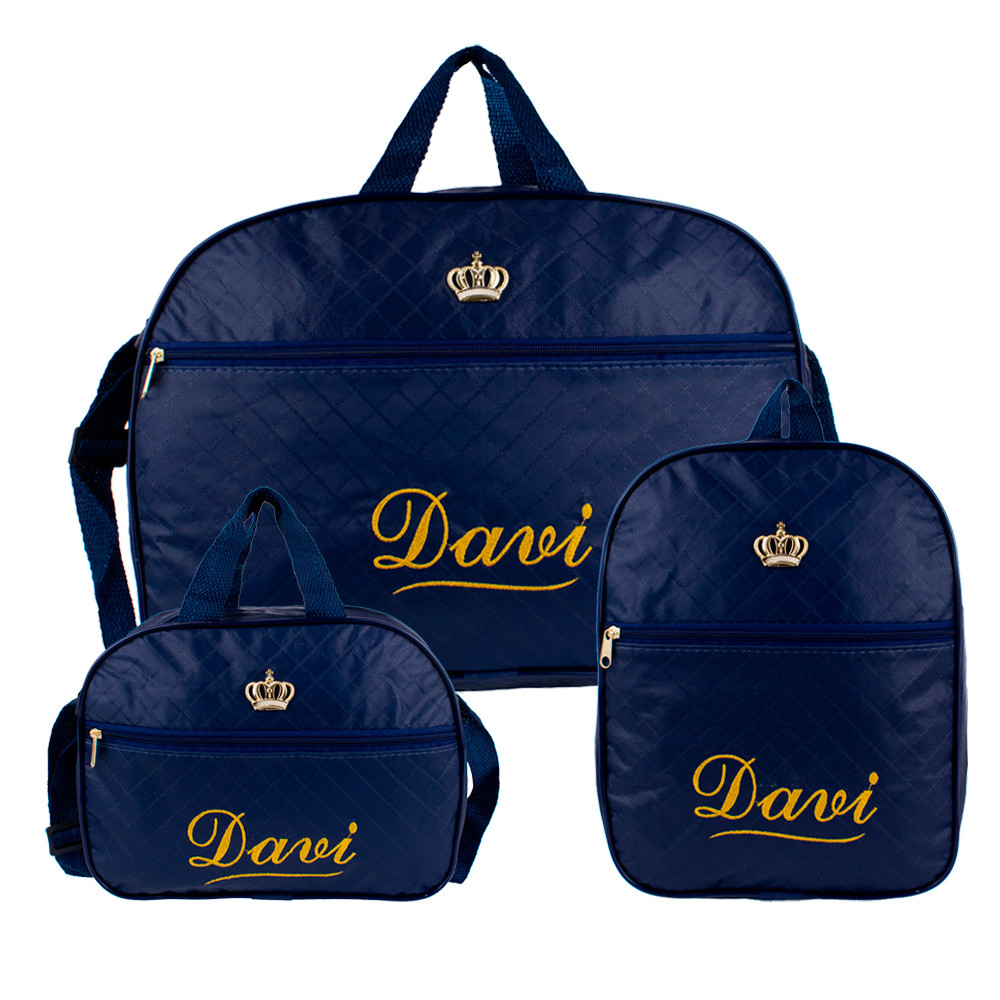 *ATENÇÃO* VOCÊ ESTÁ COMPRANDO UM PRODUTO DIRETO DA FÁBRICA, ASSIM CONSEGUIMOS ENTREGAR O MELHOR PREÇO E QUALIDADE DO MERCADO. - Assim que finalizar a compra enviar o nome a ser personalizado dentro do prazo de 24 horas, caso não seja informado o nome, a bolsa será enviada sem personalização. -Nosso prazo para a personalização é 3 a 9 dias úteis; -Os nomes dos kits no anúncio são meramente ilustrativos, o comprador que faz a escolha do nome. O nosso kit SONHO DA MAMÃE foi criado pensando totalmente na praticidade do uso, com diversos tamanhos para se adequar ao volume da mala e a necessidade de cada ocasião. O kit inclui 3 peças: 01 Bolsa Grande • Altura: 28 cm / Largura: 40 cm / Profundidade: 13 cm / Peso: 330 g. • Possui alças de mão e também alça de ombro com regulagem de altura; • 01 bolso frontal fechamento com zíper, que auxilia na organização; • Além disso, conta com amplo espaço interno, ideal para passeios longos, que demandam levar mais coisas. 01 Mochila • Altura : 32 cm / Largura : 23 cm / Profundidade : 10 cm / Peso : 190 g. • Possui alça de mão e também alças de ombro com regulagem de altura; • Confeccionada com 01 bolso frontal, que auxilia na organização; • Assim como as outras peças do kit, nossa mochila é super leve e tem o tamanho perfeito para guardar roupinhas, fraldas e acessórios! 01 Bolsa Média • Altura : 21 cm / Largura : 28 cm / Profundidade : 10 cm / Peso : 175 g. • Ela possui alças de mão e também alça de ombro com regulagem de altura; • 01 bolso frontal fechamento com zíper, que auxilia na organização; • Perfeita e compacta para saídas rápidas. DETALHES QUE IMPORTAM: • Feito com amor para você • Produto nacional • Fotos reais • Envio imediato • Garantia do fabricante • 100% Vegano • Material tecnológico: Laminado sintético, revestido em PVC fundo manta CUIDADOS: - Guarde em um local seco e arejado. - Evite colocar excesso de peso no produto para não forçar os zíperes e costuras. - Proteja os objetos cortantes e/ou pontiagudos evitando o contato direto com o produto. DICAS DE LIMPEZA: - Para a limpeza utilize apenas pano úmido com sabão neutro. - Não lavar diretamente com água e não utilizar alvejantes ou componentes químicos.