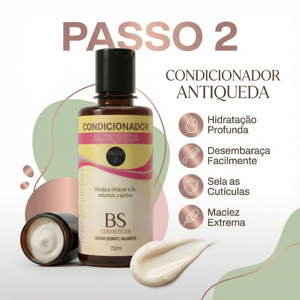 Kit Rapunzel Capilar Profissional – Shampoo, Condicionador e Sérum ✨ Pensado para um cuidado capilar completo, o Kit Rapunzel Profissional da BS Cosmetics reúne três passos essenciais para fortalecer os fios, reduzir a quebra e auxiliar no crescimento saudável do cabelo 🌱 O protocolo atua desde a limpeza do couro cabeludo até o tratamento diário com sérum, criando uma rotina contínua e fácil de cuidados 💆♀️ Conteúdo do Kit 📦 • Shampoo Antiqueda 250ml • Condicionador Antiqueda 250ml • Sérum Capilar 120ml PASSO 1 – SHAMPOO ANTIQUEDA 🧴 Auxilia na limpeza do couro cabeludo, remove impurezas e prepara os fios para o tratamento, ajudando a fortalecer a raiz e equilibrar a oleosidade. PASSO 2 – CONDICIONADOR ANTIQUEDA 💧 Promove hidratação, maciez e alinhamento dos fios, facilitando o desembaraço e auxiliando na redução da quebra. PASSO 3 – SÉRUM CAPILAR 🌿 Fórmula leve para uso diário, aplicada diretamente no couro cabeludo. Auxilia no fortalecimento, no preenchimento de falhas e no cuidado contínuo dos fios. Ativos Principais ✨ • Biotina • Pantenol • Óleo de Rícino Modo de Uso – Rotina Capilar Fácil 💖 Inclua o kit na sua rotina diária e acompanhe a evolução dos fios com o uso contínuo. Vem fazer parte do Projeto Rapunzel ✨ #ProjetoRapunzel