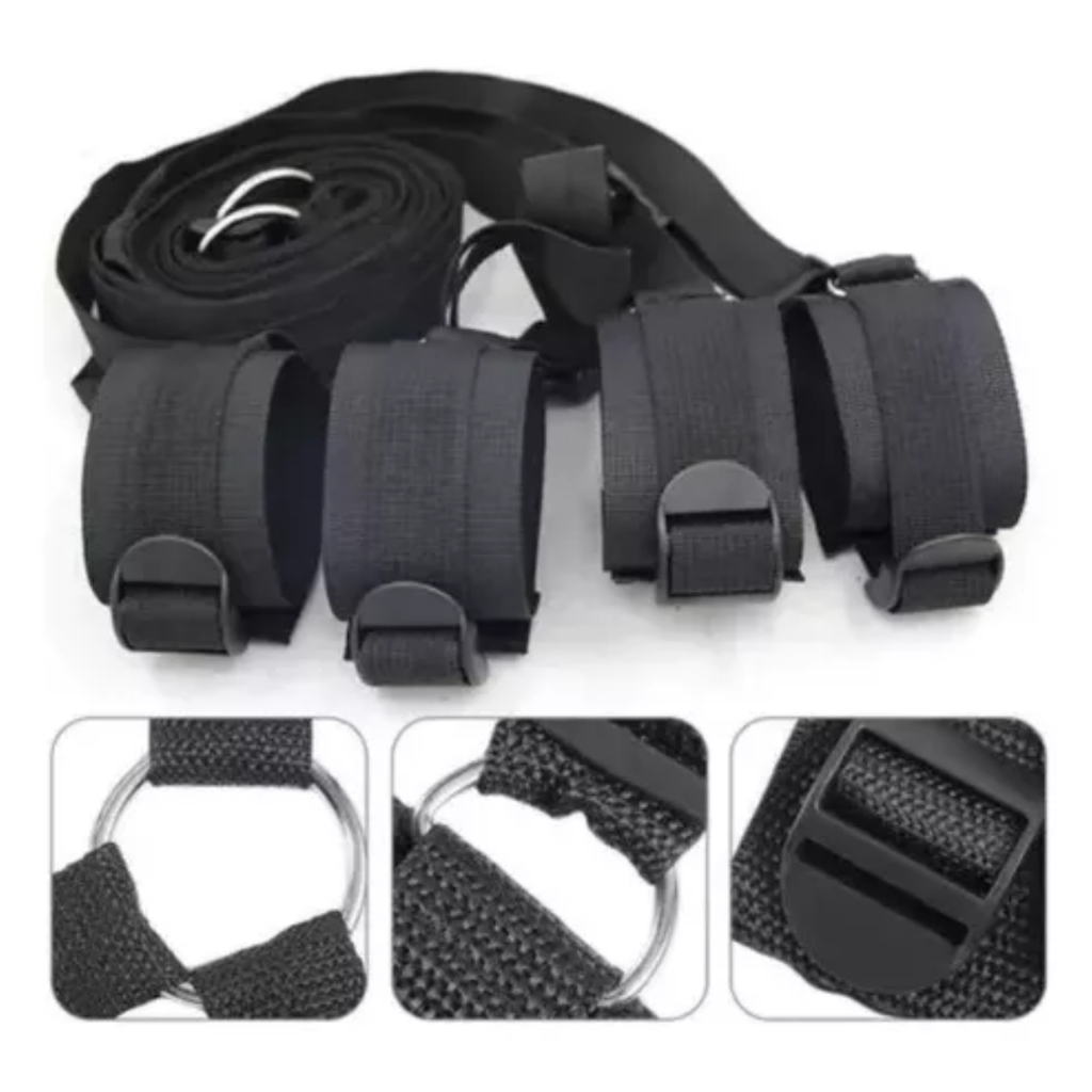 📦 Produtos com embalagens totalmente discreta (sem informação nenhuma de SexShop) 🚀 Postagem em até um dia útil após a confirmação do pagamento (pra chegar rapidinho né 😈) 📱 Ficou com alguma dúvida de compra ou pagamento? Chama a gente no chat, respondemos rapinho. 😍 Informações do produto para vocês ter váaaaarias idéias de como usar: ALGEMAS QUE SE INTERLIGAM POR DEBAIXO DA CAMA CONFORTAVEIS MODO DE USAR: VOCÊ PASSA A TIRA PRINCIPAL POR DEBAIXO DO COLCHÃO E AS OUTRAS TIRAS VÃO PRESAS NOS BRAÇOS E NAS PERNAS TUDO DE FORMA TOTALMENTE REGULÁVEL PARA QUALQUER TAMANHO DE PESSOA E DE CAMA, IMOBILIZANDO O SEU PARCEIRO. CONDIÇÃO: 100% NOVO E DE ALTA QUALIDADE COR PRETA; TAMANHO: TAMANHO ÚNICO; MATERIAIS: FITA DE POLIPROPILENO, METAL E PLÁSTICO. DIMENSÕES (REGULÁVEIS SERVE DESDE SOLTEIRO ATÉ CAMAS BOX) 1.50M DE ALTURA 2.80M DE LARGURA