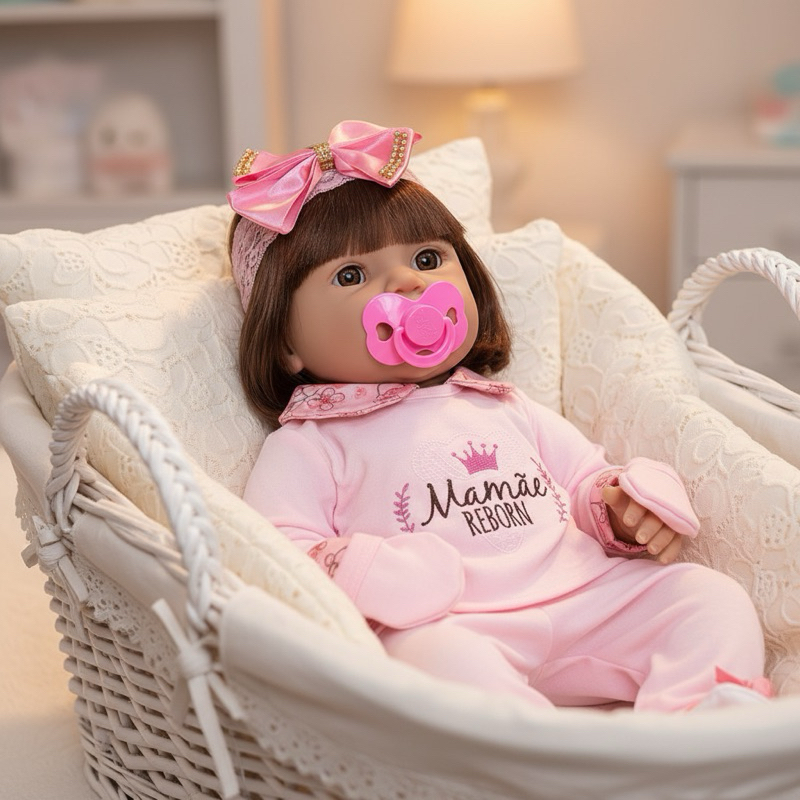 Kit Boneca Bebê Reborn 100% Silicone Mamãe Reborn + Enxoval Completo com Bolsa 30 Acessórios
